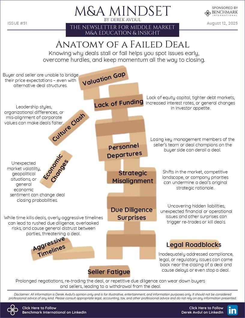 Each week, I feature a visually engaging infographic that distills a key M&A subject area into an easy-to-digest format. These quick reference guides aim to deliver clarity, insight, and practical understanding at a glance.