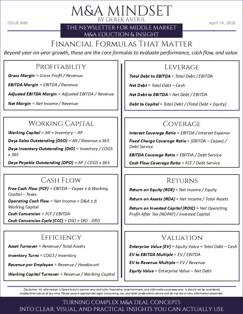 First, a breakdown of the financial formulas that matter. The core metrics behind valuation, performance, and cash flow and why understanding how they connect is critical in any transaction.