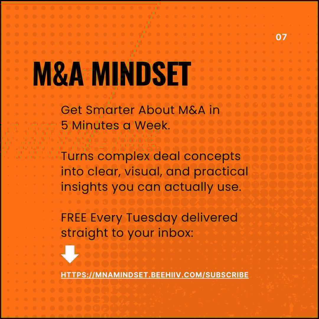 New to the M&A Mindset? This weekly newsletter cuts through the noise with concise insights, infographics, and resources on middle-market M&A—trusted by 5,000+ deal professionals, business owners, and investors. Whether you're planning a transaction, building your expertise, or just fascinated by deals, you'll find something valuable here every week.