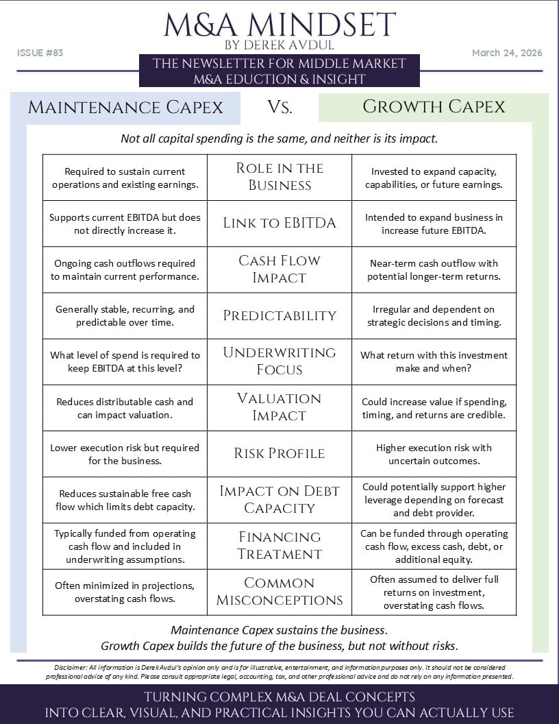 First, a breakdown of maintenance vs. growth capex and why not all reinvestment is viewed or valued the same in a transaction.