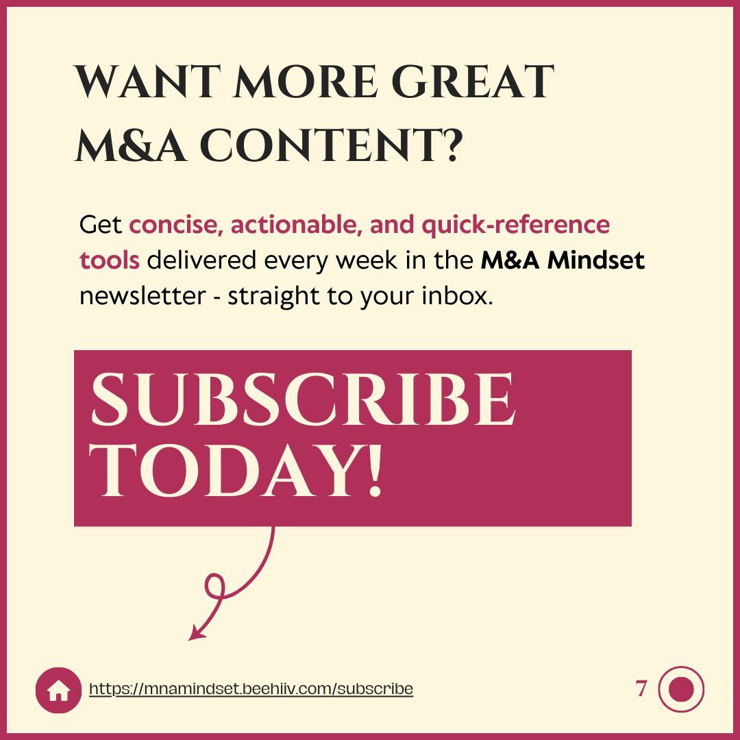 The M&A Mindset is more than just a newsletter; it’s a community for those eager to learn, grow, and share. Whether you’re planning your first transaction, expanding your expertise, or just getting started in M&A, there’s something of value here for you,