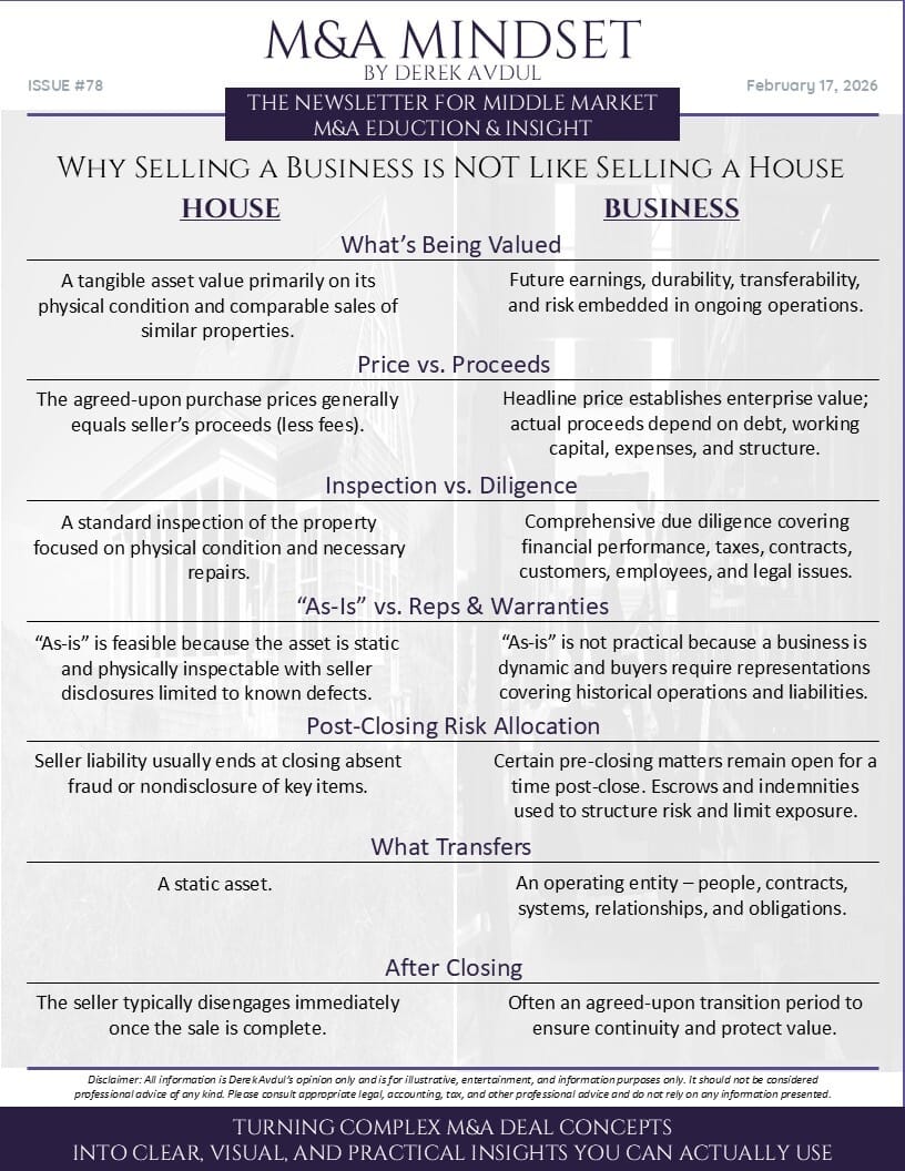 New to the M&A Mindset? This weekly newsletter cuts through the noise with concise insights, infographics, and resources on middle-market M&A—trusted by 5,000+ deal professionals, business owners, and investors. Whether you're planning a transaction, building your expertise, or just fascinated by deals, you'll find something valuable here every week.